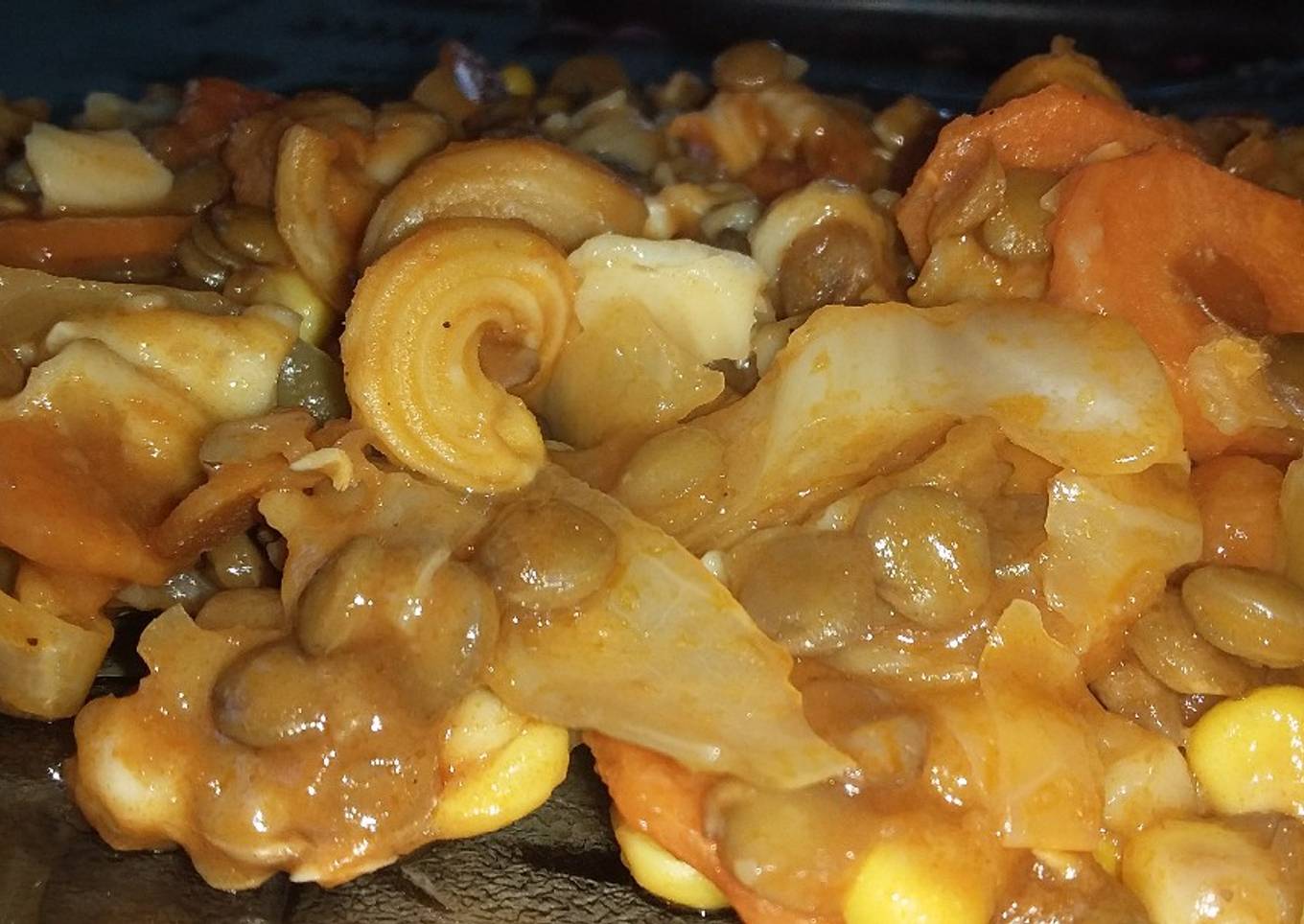 - Colocamos el aceite en una olla y agregamos el caldo. Agregamos ahora las zanahorias cortadas en rodajas finas. Agregamos las lentejas y la salsa de tomates.