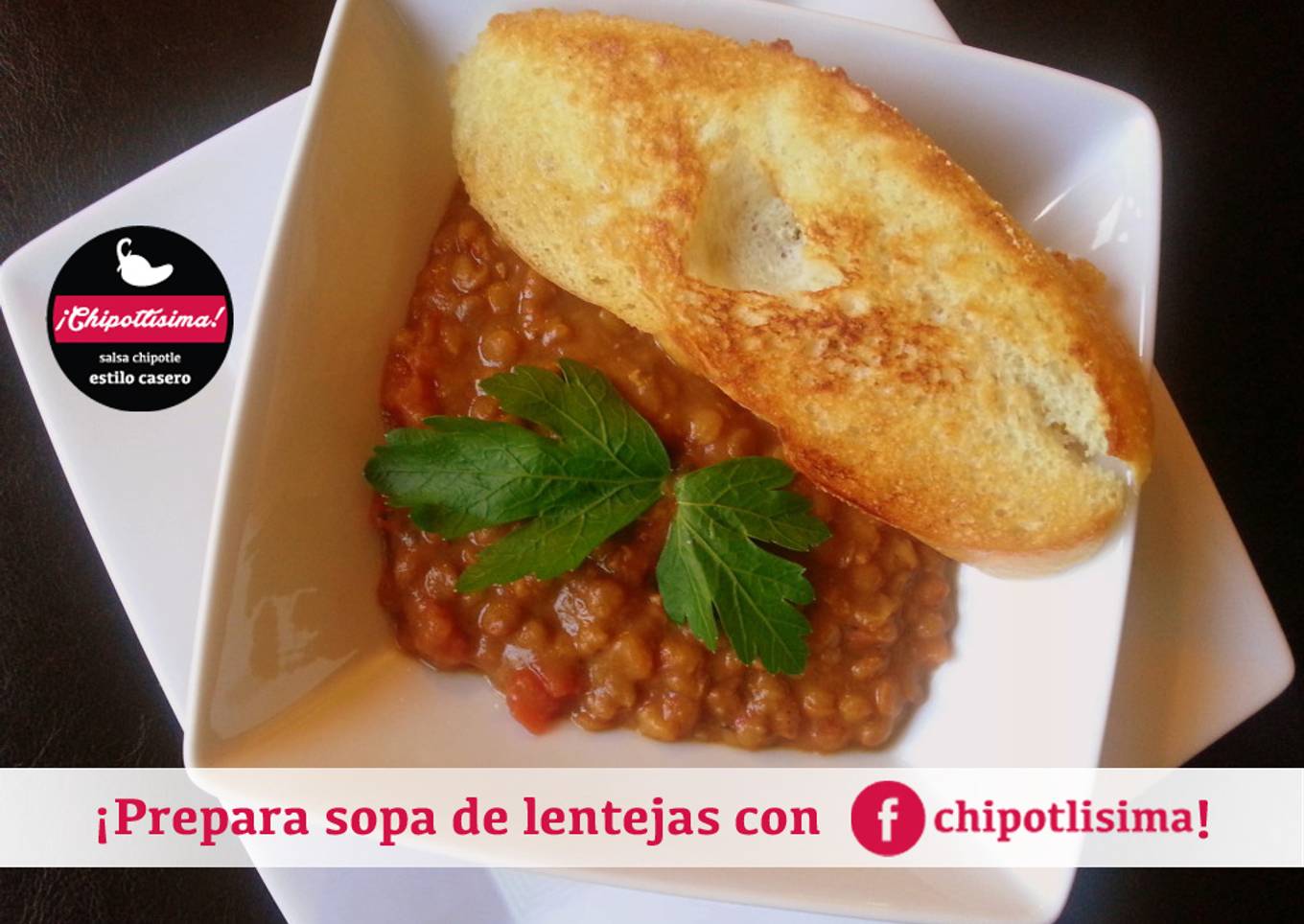 - La consistencia de la sopa debe ser espesa. Siempre prueba para asegurarte de que la sopa esta bien sazonada. Sirve en un plato hondo y acompaña con una rebanada de pan tostado, decorar con hojas de cilantro o perejil. Y disfruta de tu rica sopa de lentejas con salsa #chipotlisima.