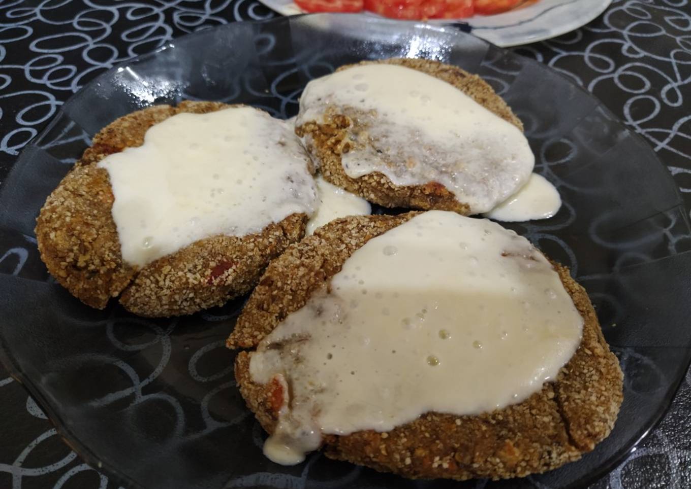 - Al sacarla de la heladera fijar si está consistente, sino agregar una cucharada de pan rallado. Ayudada con una cuchara armar por porciones y en molde de hamburguesas formar y colocarlas en una bandeja. Se pueden cocinar al horno en asaderas aceitadas bien calientes. Dar vuelta con la espátula, con cuidado para evitar que se rompan, y colocar una rodaja de Muzzarella, salen espectaculares!!!